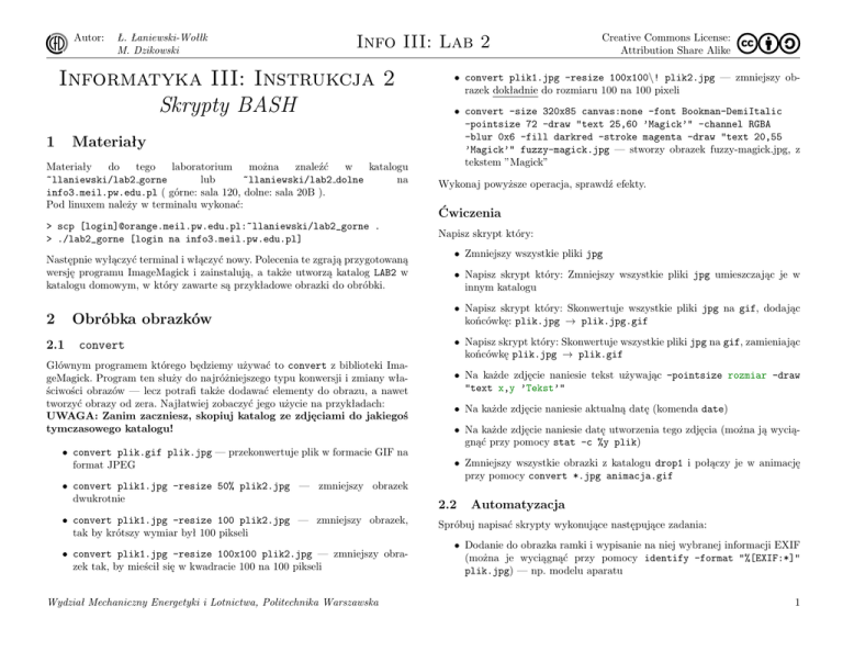 wersję programu ImageMagick i zainstalują, a także utworzą katalog LAB2 w