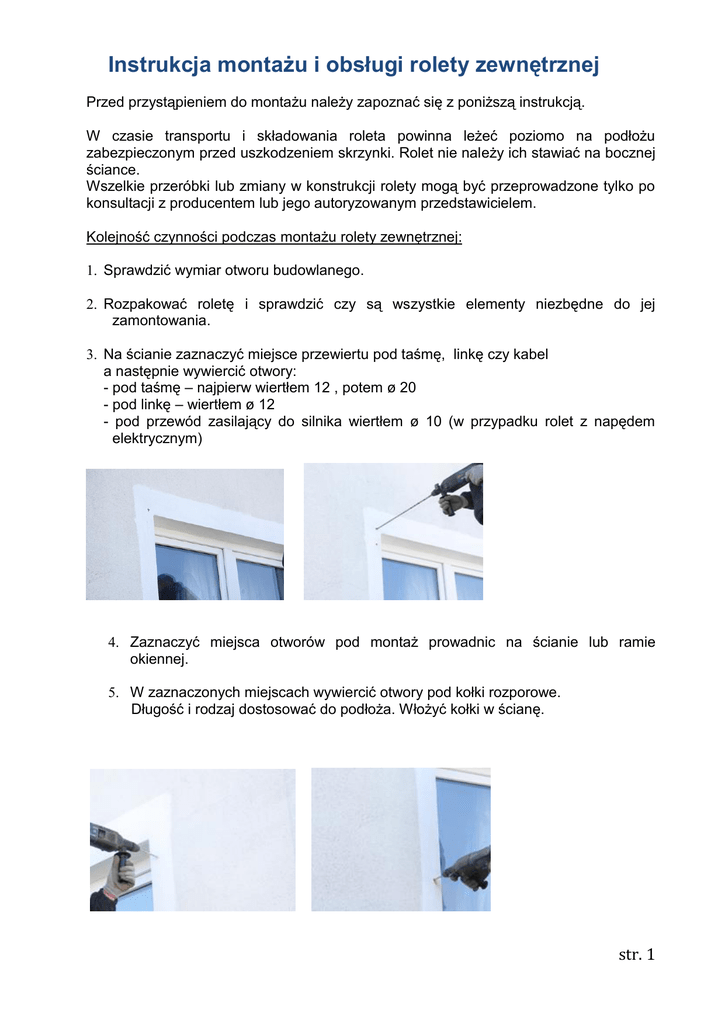 Instrukcja montażu i obsługi rolety zewnętrznej
