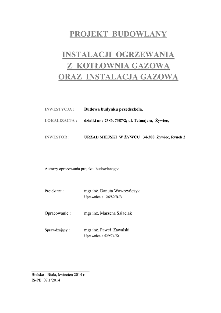 projekt budowlany instalacji ogrzewania z kotłownią gazową oraz
