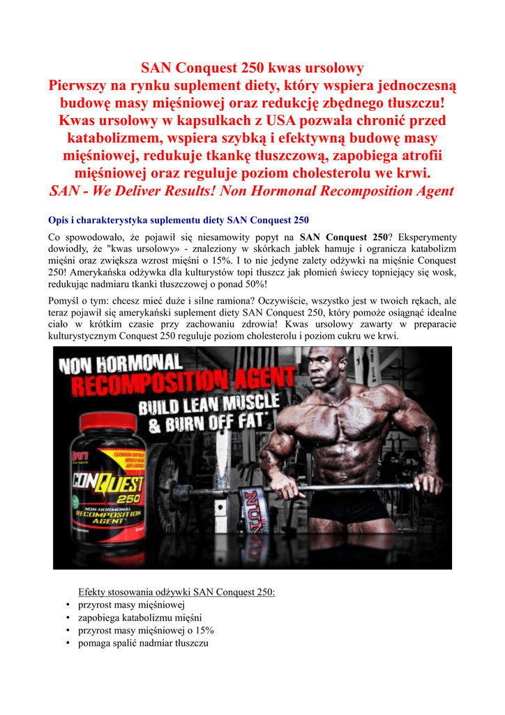 SAN Conquest 250 kwas ursolowy Pierwszy na rynku suplement