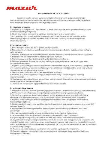 REGULAMIN WYPOŻYCZALNI MAZUR S.C. Regulamin określa