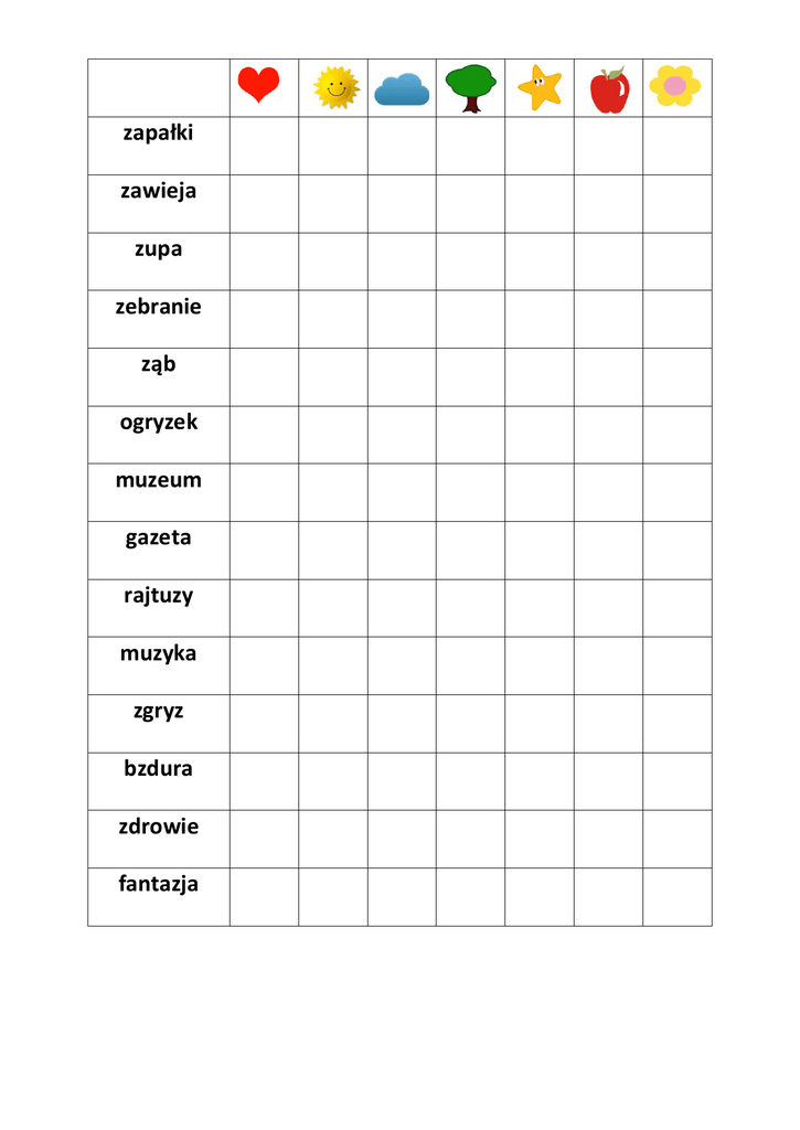 zapałki zawieja zupa zebranie ząb ogryzek muzeum gazeta rajtuzy muzyka zgryz bzdura zdrowie fantazja
