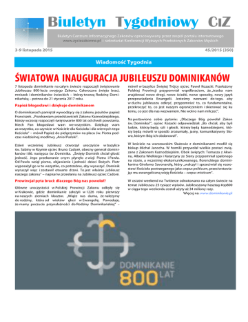 Biuletyn Centrum Informacyjnego Zakonów opracowywany przez zespół portalu internetowego