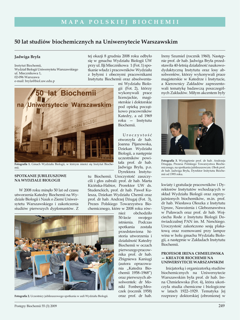 MAPA POLSKIEJ BIOCHEMII 50 lat studiów biochemicznych na