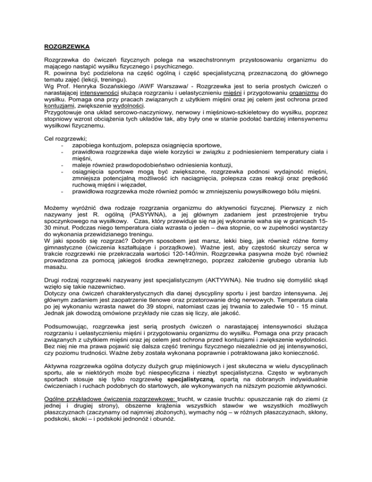 ROZGRZEWKA Rozgrzewka do ćwiczeń fizycznych polega na