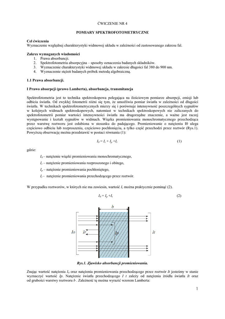 ĆWICZENIE NR 4 POMIARY SPEKTROFOTOMETRYCZNE Cel