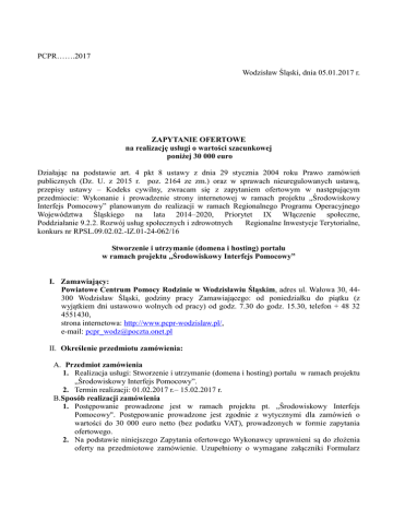 2017 Wodzisław Śląski, dnia 05.01.2017 r. ZAPYTANIE OFERTOWE