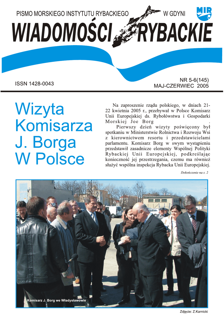 WIADOMOŒCI RYBACKIE Zdjêcie: Kordian Trella PISMO MORSKIEGO INSTYTUTU RYBACKIEGO W GDYNI WIADOMOŒCI RYBACKIE NR 5-6 (145) • MAJ-CZERWIEC 2005 Dokończenie ze s. 1 SPIS TREŚCI Wizyta Komisarza J. Borga w Polsce ....................................... 1 Protest rybaków ....................................................................... 5 Rozmowy z Duńczykami .......................................................... 5 3 maja 2005 r. w Brukseli ......................................................... 7 XII Konferencja Technologów Przemysłu Rybnego – Gdańsk 8. 06. 2005 r. ......................................................... 8 Biesiada śledziowa .................................................................... 8 Porty i przystanie rybackie wschodniego wybrzeża – stan i perspektywy rozwoju (cz. I) ..................................... Wizyta Komisarza J. Borga w Polsce 9 Unia dla nauki ......................................................................... 11 Nowe nabytki Biblioteki MIR ................................................. 12 2 miliony ton ryb za burtę!....................................................... 12 Stowarzyszenie Ochrony Dziedzictwa Rybołówstwa.............. 12 Ceny w I kwartale 2005 r. ....................................................... 13 Polonia MIR-owska ................................................................. 14 Historyczne ciekawostki .......................................................... 15 Z kart historii (maj, czerwiec) .................................................. 16 Profesor dr hab. Józef Sosiński – emeritus! ............................. 17 Nowi mieszkańcy Akwarium Gdyńskiego............................... 18 Bardzo dobre wystąpienie miał Pan Rafał Kociucki, który przedstawił charakterystykę polskiego rybołówstwa i wyniki wdrażania Sektorowego Programu Operacyjnego: Rybołówstwo i Przetwórstwo Ryb. W dyskusji zabierali głos przedstawiciele parlamentu: Pani Gertruda Szumska, Elżbieta Piela-Mielczanek oraz Kazimierz Plocke. Pytali oni o podział Bałtyku na zachodni i wschodni, kwestionowali ocenę stanu zasobów i ustalone kwoty połowowe, długość okresu zamkniętego oraz formy pomocy rybołówstwu, przede wszystkim przybrzeżnemu. Odpowiadając na pytania J. Borg nie przedstawił nic nowego odpowiadając, że podział Bałtyku nie jest podziałem pomiędzy starymi a nowymi państwami członkowskimi, a wynika on z występowania odrębnych stad ryb na tych obszarach. Ocena zasobów odbywa się w oparciu o doradztwo ICES i choć wiemy, że nie jest ona w pełni doskonała, na dzień dzisiejszy lepszej możliwości oceny nie ma, dlatego kwoty połowowe są ustalane właśnie na jej podstawie. Jeśli chodzi o okres zamknięty to Komisja Europejska i niektóre państwa członkowskie optowały za jeszcze dłuższym okresem, a obecny 4,5-miesięczny, jest wynikiem twardych negocjacji pozostałych państw, w tym Polski. Zdaniem Komisarza Borga nie ma raczej szans na zmianę TAC i skrócenie okresu ochronnego w 2005 roku. J. Borg przypomniał, że na początku maja rozpoczynają się negocjacje dotyczące długoterminowego planu zarządzania dorszem na Bałtyku i zachęcił zarówno administrację jak i przedstawicieli sektora, do aktywnego uczestniczenia w tych negocjacjach. Pokreślił on również znaczenie jak najszybszego utworzenia Regionalnej Rady Doradczej dla Morza Bałtyckiego, która powinna znacznie zwiększyć wagę głosu rybaków w zarządzaniu zasobami ryb na Bałtyku. Kolejny dzień wizyty Komisarz Borg spędził na Wybrzeżu. Towarzyszył mu z ramienia MRiRW Sekretarz Stanu Jerzy Pilarczyk i Dyrektor Departament Rybołówstwa Grzegorz Łukasiewicz. Wizytę na Wybrzeżu rozpoczęto od zwiedzania zakładu przetwórstwa rybnego „PRORYB”, prowadzonego przez Państwa Dyzmańskich. Po zwiedzeniu tego jednego z najbardziej zasłużonych i utytułowanych zakładów Wybrzeża, goście mogli spróbować jego wyśmienitych Morski Instytut Rybacki, 81-332 Gdynia, ul. Kołłątaja 1 fax (058) 620 28 31, tel. (058) 620 28 25 E-mail: [email protected] www.mir.gdynia.pl; www.wiadomosci.rybackie.pl Przewodniczący Zespołu Redakcyjnego: Tomasz Linkowski Redaktor naczelny : Zbigniew Karnicki Sekretarz redakcji: Iwona Fey Skład i łamanie: Lucyna Jachimowska Konto bankowe Wydawcy: MILLENIUM BIG Bank Gdański S.A. I Oddział w Gdyni 441 Nr 45116022020000000061917907 2 Degustacja wyrobów firmy „Proryb” wyrobów. Dyskutując o surowcach bałtyckich Zygmunt Dyzmański (w przeddzień wizyty p. Zygmunt obchodził 79 urodziny – najlepsze życzenia od Redakcji WR) podkreślił, że byłby w stanie wykorzystywać więcej śledzia bałtyckiego, gdyby był on sortowany i jednolitej jakości. Wizytę we Władysławowie zapoczątkowało spotkanie z rybakami, członkami Zrzeszenia Rybaków Morskich, oczekujących na Komisarza w pobliżu swoich kutrów. Rybacy przestawili Komisarzowi swoją niezmiernie trudną sytuację w bieżącym roku, ze względu na niskie kwoty połowowe i nieuzasadniony tak długi okres ochronny dorsza. Podobnie jak w Warszawie, Komisarz zachęcał rybaków do szybkiego utworzenia Regionalnej Rady Doradczej dla Bałtyku tak, aby mieli swoją bezpośrednią reprezentację w negocjacjach z Komisją Europejską. Nie dawał nadziei na zmianę obecnie obowiązujących regulacji, choć nie twierdził, że podobnie drastyczne będą obowiązywały w roku przyszłym. Dyrektor Szkunera, Romualda Białkowska pokazała Komisarzowi i towarzyszącym mu osobom przedsiębiorstwo oraz będące w trakcie budowy Centrum Pierwszej Sprzedaży Ryb. Kolejny etap wizyty to Jastarnia, z portem pełnym jednostek łososiowych. Przedstawiciel rybaków łososiowych, Pan Michał Khonke wręczył Komisarzowi Borgowi petycję rybaków wzywającą Komisję Europejską do zmiany rozporządzenia wprowadzającego zakaz używania pławnic łososiowych od 2007 roku, w związku z ochroną morświna oraz rewi