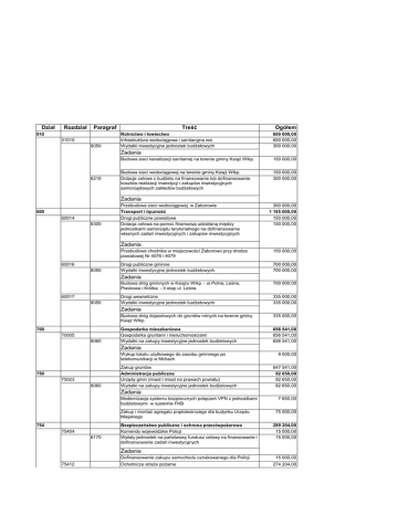 Dział Rozdział Paragraf Treść Ogółem Zadania Zadania Zadania