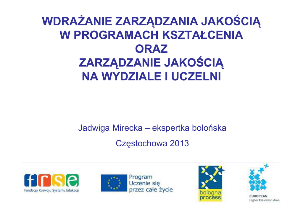wdrażanie zarządzania jakością w programach kształcenia oraz