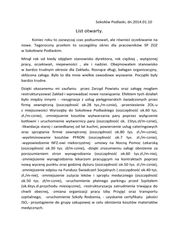 List otwarty. - SPZOZ w Sokołowie Podlaskim