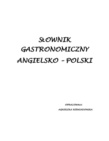 SŁOWNIK GASTRONOMICZNY ANGIELSKO – POLSKI
