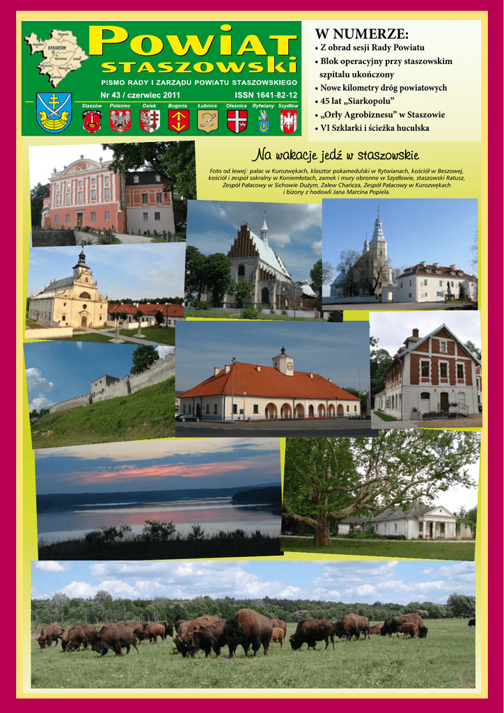 W NUMERZE: 1 • Z obrad sesji Rady Powiatu • Blok operacyjny przy staszowskim szpitalu ukończony • Nowe kilometry dróg powiatowych • 45 lat „Siarkopolu” • „Orły Agrobiznesu” w Staszowie • VI Szklarki i ścieżka huculska Na wakacje jedź w staszowskie Foto od lewej: pałac w Kurozwękach, klasztor pokamedulski w Rytwianach, kościół w Beszowej, kościół i zespół sakralny w Koniemłotach, zamek i mury obronne w Szydłowie, staszowski Ratusz, Zespół Pałacowy w Sichowie Dużym, Zalew Chańcza, Zespół Pałacowy w Kurozwękach i bizony z hodowli Jana Marcina Popiela. 2 Sesja absolutoryjna Prezydium Rady Powiatu w Staszowie, od lewej: wiceprzewodniczący Jerzy Chudy, przewodniczący Damian Sierant i wiceprzewodnicząca Lucyna Kozoduj. Pozytywne opinie w sprawie udzielenia Zarządowi absolutorium za 2010 rok wygłosili: Jacek Nowak - przewodniczący Komisji Budżetu i Rozwoju Gospodarczego, … …Marek Chyla - przewodniczący Komisji Infrastruktury, Rolnictwa i Promocji, … …Janina Złotnik - przewodnicząca Komisji Zdrowia, Opieki Społecznej i Polityki Prorodzinnej, a także… …Andrzej Poniewierski przewodniczący Komisji Oświaty, Wychowania, Kultury, Sportu i Turystyki. Starosta staszowski Andrzej Kruzel pozytywnie ocenił rezultaty, osiągnięte przez władze powiatu w roku ubiegłym, zwracając m.in. uwagę na 48% udział wydatków majątkowych - na łączną kwotę 43 mln zł., w ogólnych wydatkach powiatu. Radni powiatu staszowskiego i zaproszeni goście, od lewej: Michał Wójtowicz, Grzegorz Rajca, Janina Złotnik, Janusz Bąk, Wacław Słodkowski, Jacek Nowak, wicestarosta Michał Skotnicki, członek Zarządu Województwa Świętokrzyskiego Kazimierz Kotowski i starosta staszowski Andrzej Kruzel. Radni powiatu staszowskiego, siedzą od lewej: Adam Kowal, Grzegorz Strzała, Andrzej Poniewierski, Adam Siekierski, Stanisława Błażejewska, Marek Chyla, Leszek Kopeć, Andrzej Iskra i Ryszard Andrzej Gad. Kwiaty i gratulacje poprzedniemu staroście, burmistrzowi Staszowa Romualdowi Garczewskiemu składa obecny starosta, były wicestarosta, Andrzej Kruzel. Burmistrz Romuald Garczewski podziękował również przewodniczącemu Rady Damianowi Sierantowi i wszystkim radnym powiatu staszowskiego. 3 Absolutorium dla Zarządu Powiatu, jak najbardziej zasłużone Podczas 12. sesji Rady Powiatu w Staszowie, jaka odbyła się w dniu 20 czerwca br., przegłosowano 10 projektów uchwał, w tym najważniejszy, w sprawie udzielenia Zarządowi Powiatu absolutorium za 2010 rok. Po otwarciu obrad, przez przewodniczącego Rady Damiana Sieranta, o wprowadzenie pod głosowanie dodatkowych 8 projektów uchwał, w imieniu Zarządu Powiatu, poprosił wicestarosta Michał Skotnicki. Tak rozszerzony program sesji, a także protokół z 10. roboczego posiedzenia, radni przyjęli jednogłośnie. Przed głosowaniem pierwszego projektu uchwały, ,,W sprawie zatwierdzenia sprawozdania finansowego wraz ze sprawozdaniem z wykonania budżetu za 2010 rok”, którą przyjęto jednogłośnie, skarbnik powiatu Jolanta Piotrowska odczytała ,,Uchwałę VI Składu Orzekającego Regionalnej Izby Obrachunkowej w Kielcach w sprawie opinii o sprawozdaniach z wykonania budżetu Powiatu Staszowskiego za 2010 rok, wraz z informacją o stanie mienia jednostek samorządu terytorialnego i objaśnieniami”. Następnie rozpoczęto procedowanie najważniejszego projektu uchwały dotyczącego ,,Udzielenia Zarządowi Powiatu absolutorium za 2010 rok”. Wniosek w powyższej sprawie Komisji Rewizyjnej Rady Powiatu w Staszowie oraz Uchwałę Składu Orzekającego RIO zawierającą opinię o wniosku Komisji Rewizyjnej, odczytał jej przewodniczący Wacław Słodkowski. Za przyjęciem projektu uchwały absolutoryjnej 17 radnych głosowało ,,za”, 1 radny wstrzymał się od głosu. Podobnie było w przypadku kolejnych 2 projektów uchwał w sprawach: zmian w ,,Wieloletniej prognozie finansowej powiatu na lata: 2011 – 2019” oraz ,,Zmian w budżecie powiatu na 2011 rok”. Po uzyskaniu absolutorium przez Zarząd, starosta staszowski Andrzej Kruzel, serdecznie pogratulował poprzedniemu staroście, burmistrzowi miasta i gminy Staszów Romualdowi Garczewskiemu, a także pozostałym członkom poprzedniego Zarządu, jak również radnym poprzedniej kadencji. Starosta Andrzej Kruzel, który sam był członkiem poprzedniego Zarządu i wicestarostą, zwrócił uwagę na szczególnie dobre wskaźniki, jakie udało się osiągnąć w 2010 roku, m.in.: 48% udział wydatków majątkowych, na ogólną kwotę 43 mln 180 tys. zł, w ogólnych wydatkach powiatu, co umożliwiło realizację inwestycji, mających istotne znaczenie dla rozwoju powiatu i podniesienia standardu życia mieszkańców ziemi staszowskiej. Starosta, na potwierdzenie swojej tezy wymienił: budowę Bloku Operacyjnego przy staszowskim szpitalu, oddanie do użytku nowo wyremontowanego Oddziału Pediatrycznego, otwarcie nowego kierunku kształcenie – technik budowlany w Zespole Szkół w Staszowie oraz odbudowę, kosztem blisko 32 mln zł, ponad 87 km nowej nawierzchni dróg powiatowych. Starosta Andrzej Kruzel podziękował władzom gmin powiatu staszowskiego, za współfinansowanie inwestycji na drogach powiatowych, łączną kwotą 4 mln 548 tys. zł. Z kolei głos zabrał poprzedni starosta, burmistrz Staszowa Romuald Garczewski, który także pozytywnie ocenił ,,powiatowy” dorobek poprzedniego roku, wręczając przewodniczącemu Damianowi Sierantowi bukiet kwiatów. Pochwał nie szczędzili także obecni na obradach: poseł Krzysztof Lipiec i członek Zarządu Województwa Świętokrzyskiego Kazimierz Kotowski, podkreślając w swoich wypowiedziach m.in. szczególną troskę władz powiatu o staszowski szpital, stający się wizytówką szpitalnictwa województwa świętokrzyskiego. Korzystając z obecności wicemarszałka Kazimierza Kotowskiego, radni poruszyli sprawę remontu wałów rzeki Wisły, Czarnej i Kanału Strumień, a takż