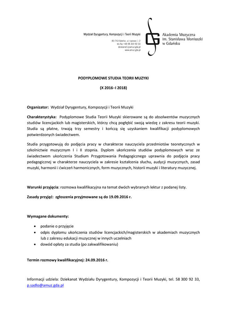 PODYPLOMOWE STUDIA TEORII MUZYKI (X 2016–I 2018