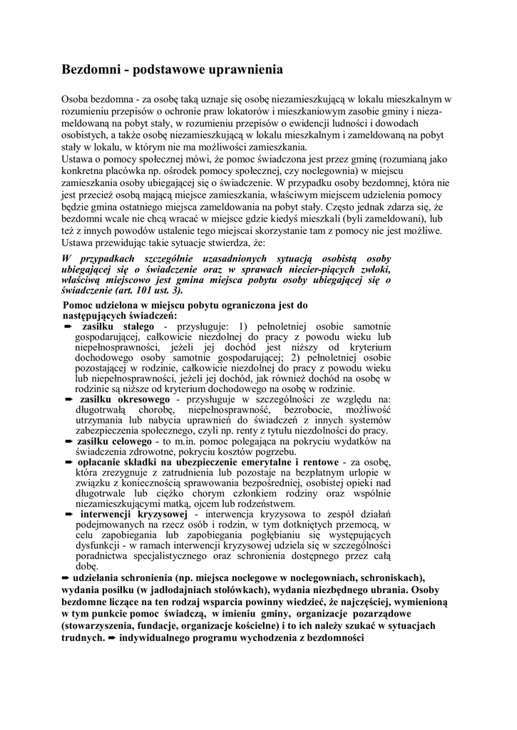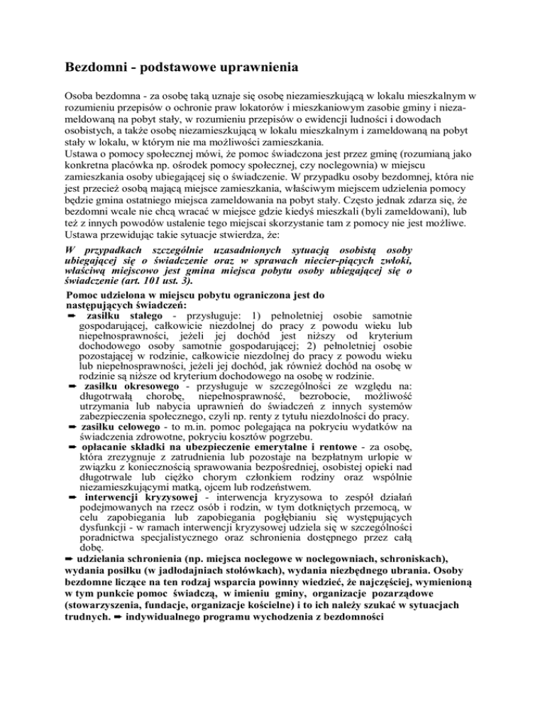 Bezdomni - podstawowe uprawnienia