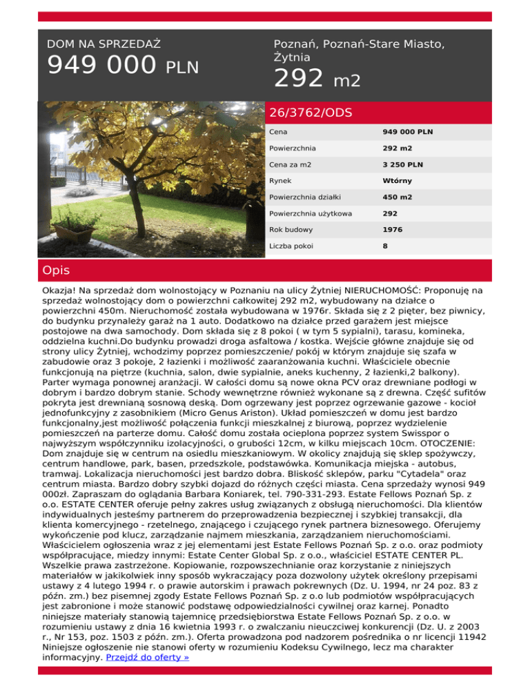 949 000 PLN 292 m2 - NAI Estate Fellows