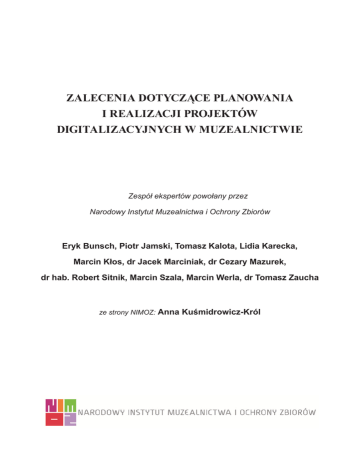 ZALECENIA DOTYCZĄCE PLANOWANIA I REALIZACJI PROJEKTÓW DIGITALIZACYJNYCH W MUZEALNICTWIE