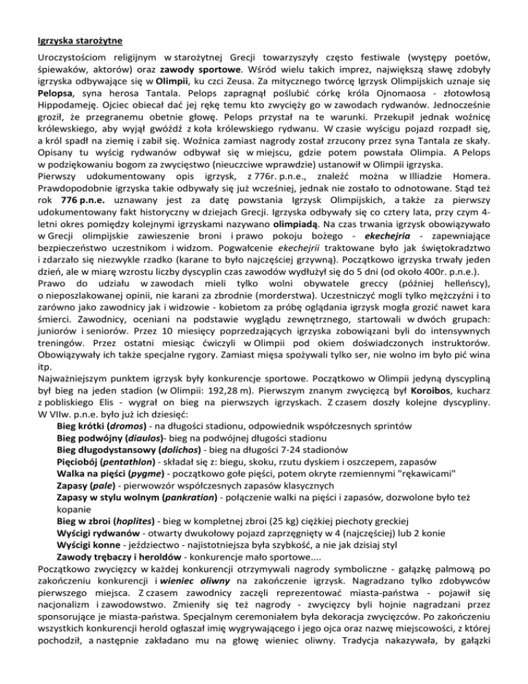 igrzyska odbywające się w Olimpii, ku czci Zeusa. Za mitycznego twórcę Igrzysk Olimpijskich uznaje się