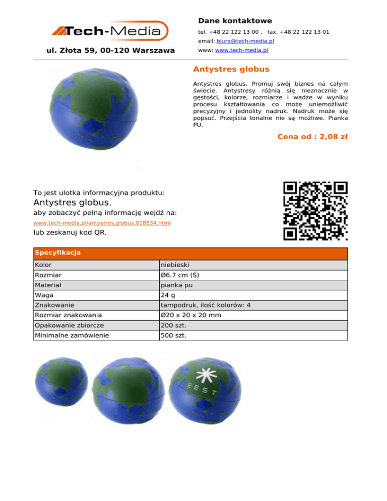 Antystres globus - ulotka produktu - Tech