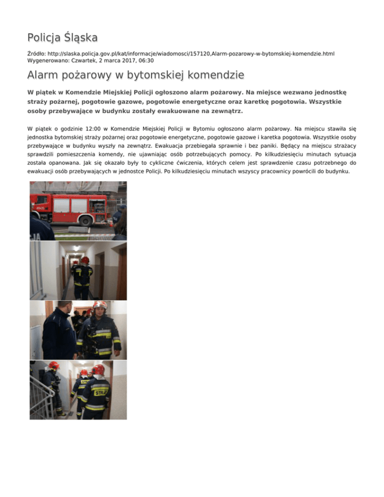 Policja Śląska Alarm pożarowy w bytomskiej komendzie