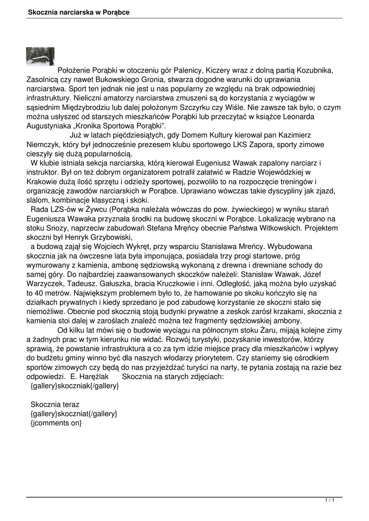 organizację zawodów narciarskich w Porąbce. Uprawiano wówczas takie dyscypliny jak zjazd,