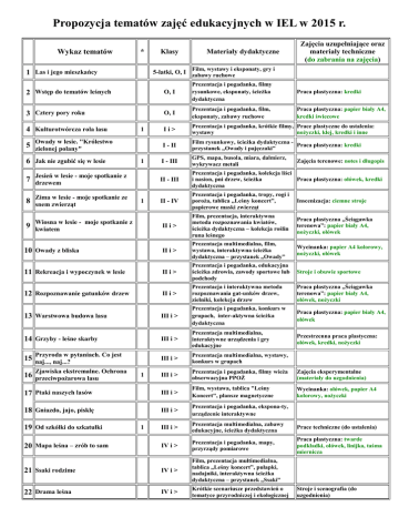 Propozycja tematów zajęć edukacyjnych w IEL w 2015 r