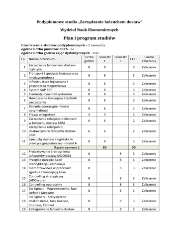 program studiów - Studia podyplomowe Zarządzanie Łańcuchem