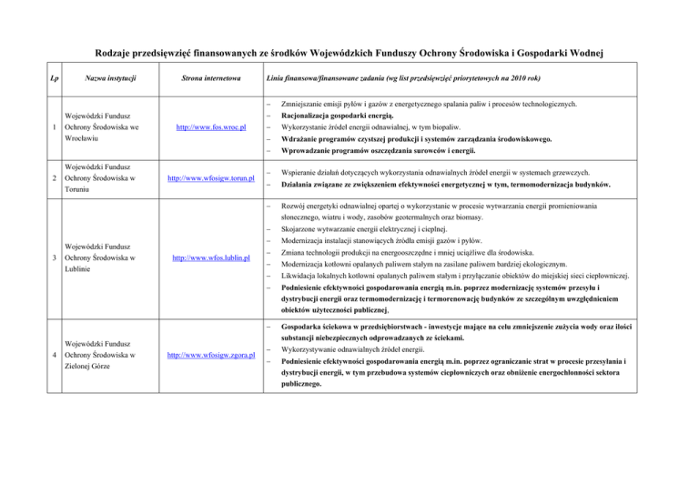 Rodzaje przedsięwzięć finansowanych ze środków Wojewódzkich