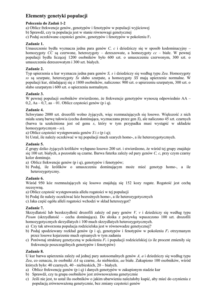 Genetyka populacyjna – zadania