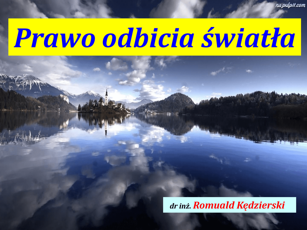 Prawo odbicia światła dr inż. Romuald Kędzierski Odbicie fal - przypomnienie Kąt padania: Jest to kąt pomiędzy tzw. promieniem fali padającej (wskazującym kierunek i zwrot jej propagacji), a prostą prostopadłą (tzw. normalną) do powierzchni odbijającej, wystawioną w rozpatrywanym punkcie padania. Kąt odbicia: Jest to kąt pomiędzy tzw. promieniem fali odbitej (wskazującym kierunek i zwrot jej propagacji po odbiciu), a prostą prostopadłą (tzw. normalną) do powierzchni odbijającej, wystawioną w rozpatrywanym punkcie padania. normalna promień fali padającej promień fali odbitej Wniosek: jeżeli fala pada prostopadle, to: powierzchnia odbijająca Odbicie fal - przypomnienie Zasada Huygensa: Każdy punkt ośrodka, do którego dotarło czoło fali można uważać za źródło nowej fali kulistej. Fale te zwane są falami cząstkowymi i interferują ze sobą. Wypadkową powierzchnię falową tych fal cząstkowych tworzy powierzchnia styczna do wszystkich powierzchni fal cząstkowych. Zasada Fermata: (dla fal świetlnych) Promień świetlny poruszający się (w dowolnym ośrodku) od punktu A do punktu B przebywa zawsze lokalnie minimalną drogę optyczną, czyli taką, na której przebycie potrzeba czasu najkrótszego (dla przypadków klasycznych). Prawo odbicia fal Wyprowadzenie w oparciu o zasadę Fermata Dana jest powierzchnia odbijająca oraz dwa punkty A i B leżące w różnej odległości od rozpatrywanej powierzchni normalna Problem: Korzystając z zasady Fermata, znajdź taką drogę promienia fali wychodzącej z punktu A, aby po odbiciu dotarł do punktu B w najkrótszym czasie. Który z promieni (AX) wychodzących z punktu A, po odbiciu od powierzchni odbijającej, przejdzie w najkrótszym czasie do punktu B? - rzuty prostokątne punktów A i B na płaszczyznę odbijającą - punkt będący obrazem punktu B względem powierzchni odbijającej Najkrótszy czas przejścia z punktu A do punktu B’, odpowiada drodze ACB’, jeśli wszystkie te punkty leżą na jednej prostej! Punkt X jest wtedy punktem C! Zarazem trójkąty: przystające! Prawo odbicia fal – zasada Fermata Jednocześnie pomiędzy kątami: będącymi kątami wierzchołkowymi, zachodzi zależność: kąty wierzchołkowe Zarazem: Zatem: Ostatecznie: Kąt odbicia ma taką samą miarę, jak kąt padania i oba kąty leżą w jednej płaszczyźnie. Prawo sformułowane przez Willebrorda Snella van Royena w 1618 r. Prawo odbicia fal Wyprowadzenie w oparciu o zasadę Fermata i znajomość rachunku różniczkowego. Problem: normalna Jaki warunek musi zachodzić pomiędzy kątem padania a kątem odbicia, aby czas przejścia światła – rozchodzącego się z prędkością v – z punktu A do B był najkrótszy? Droga przebyta przez światło: Z rysunku wynika, że: Zatem: lub: Czas przejścia światła – na drodze ACB – będzie najkrótszy dla tak dobranej wartości x, dla której zależność tACB=f(x) osiągnie minimum. Może to mieć miejsce dla takiego x, dla którego pierwsza pochodna badanej zależności będzie równa zero. Stąd: Po redukcji wyrazów podobnych: Zatem: Z rysunku widać, że: oraz oraz Stąd: Czas przejścia światła będzie najkrótszy, jeżeli kąt odbicia będzie miał taką samą miarę, jak kąt padania! Uwaga: Należałoby jeszcze wykazać, że dla: rozpatrywana funkcja ma wartość minimalną! Jest to zadanie dla chętnych na ocenę celującą!