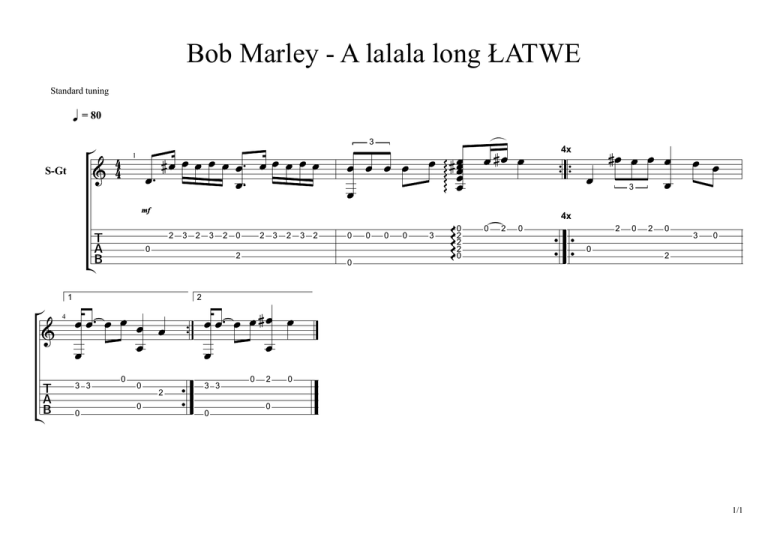 Bob Marley - A lalala long ŁATWE Standard tuning = 80 3 4x 1 S-Gt 3 4x 2 3 2 3 2 0 0 2 3 2 3 2 2 1 0 0 0 0 0 3 0 2 2 2 0 0 2 0 2 0 0 2 0 3 0 2 2 4 3 3 0 0 0 0 2 3 3 0 0 2 0 0 1/1