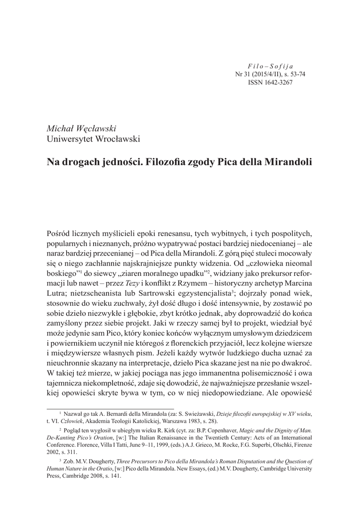 Na drogach jedności. Filozofia zgody Pica della Mirandoli - Filo