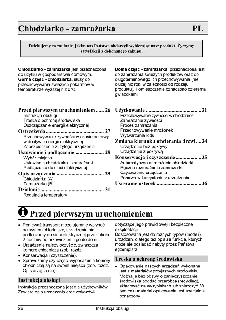 Chłodziarko - zamrażarka PL Przed pierwszym